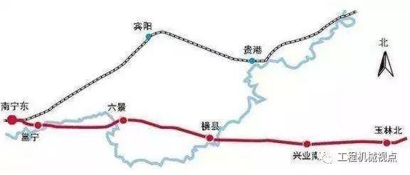 南玉铁路全线经南宁、贵港、玉林等三市,正线长度193.31公里,设南宁东、五合(越行站)、六景、横县、兴业南、玉林北6处车站,全线共有124座桥梁,35座隧道,桥隧比83.98%,设计行车速度350公里/小时,项目建设总工期4年。先期开工段平悦隧道段、良睦隧道段站前工程已于7月份开工建设。